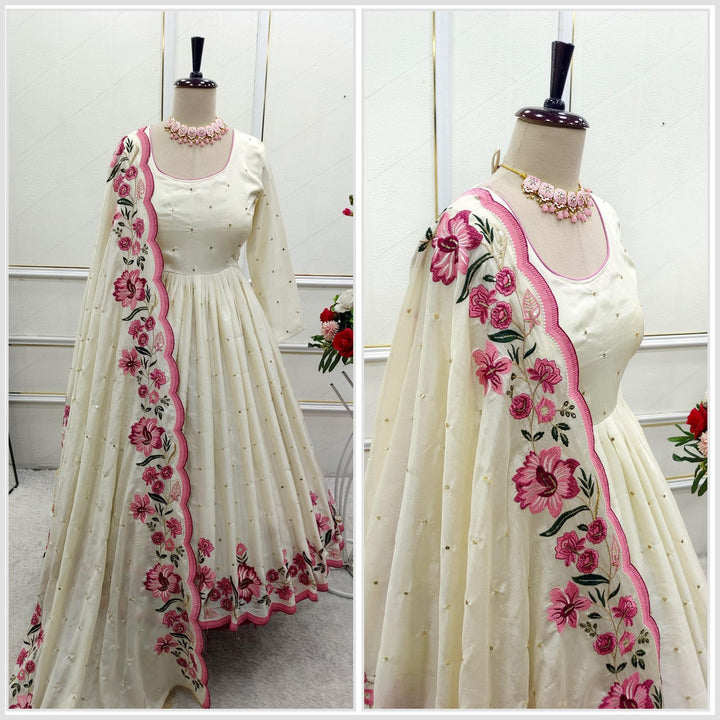 Clothsy Fashion Presenting New Collection Heavy Pure Cinon Silk Gown -Pent Dupatta Set Fully Stitched Ready To Wear